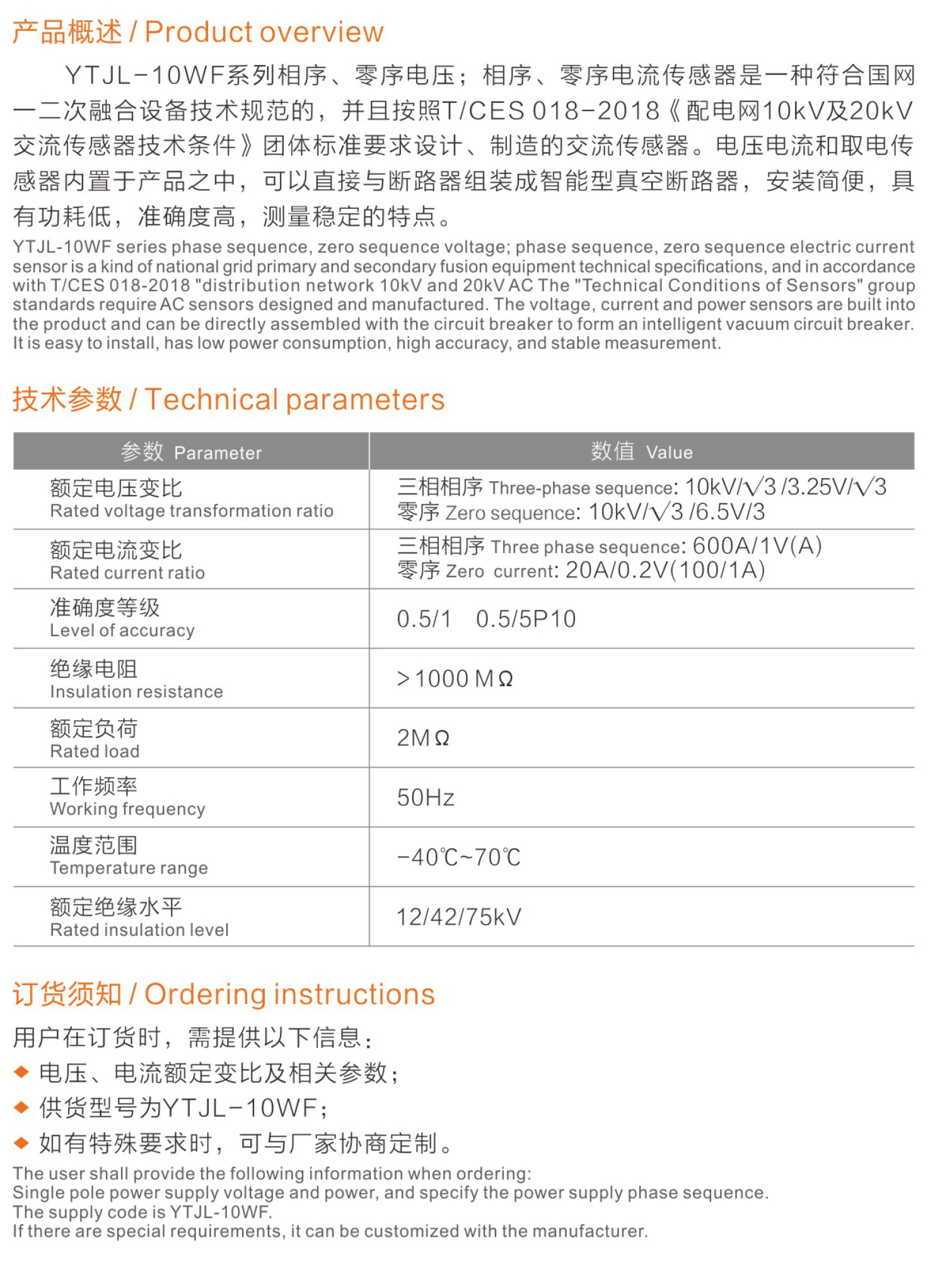 名稱:一二次融合電子式組合傳感器