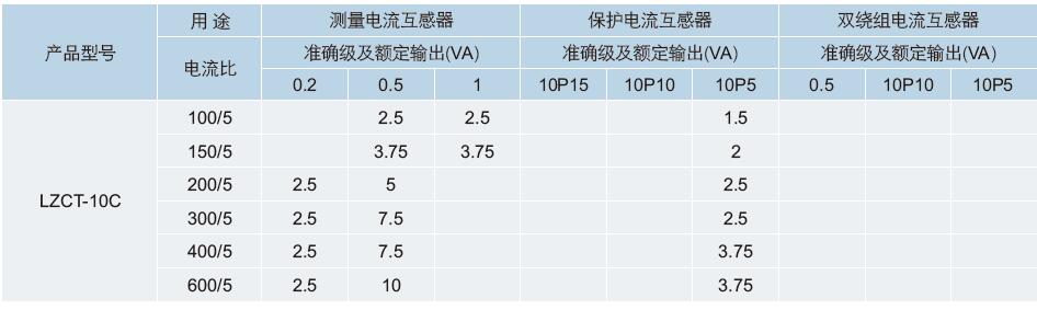 三、LZCT-10C套管式電流互感器變比參數