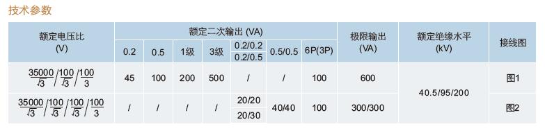 三、JDZX11-35R全封閉高壓電壓互感器變比參數