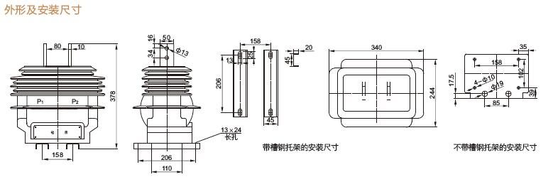 三、LZZW-10Q 、LZZBW-10戶外電流互感器產(chǎn)品外形及安裝尺寸-浙江中拓高壓戶外電流互感器