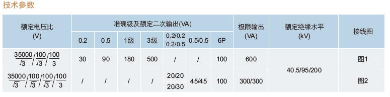 二、JDZXW-35戶外35kV電壓互感器技術(shù)參數(shù)